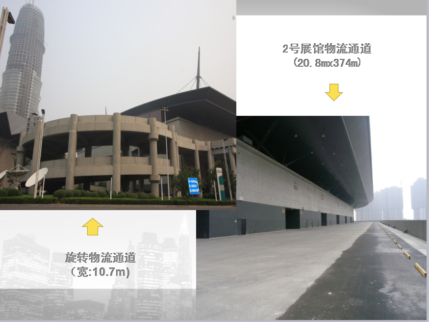 4.5萬平方米室外停車場,共設1800個停車位; 旋轉物流通道實現(xiàn)人流車流分流。