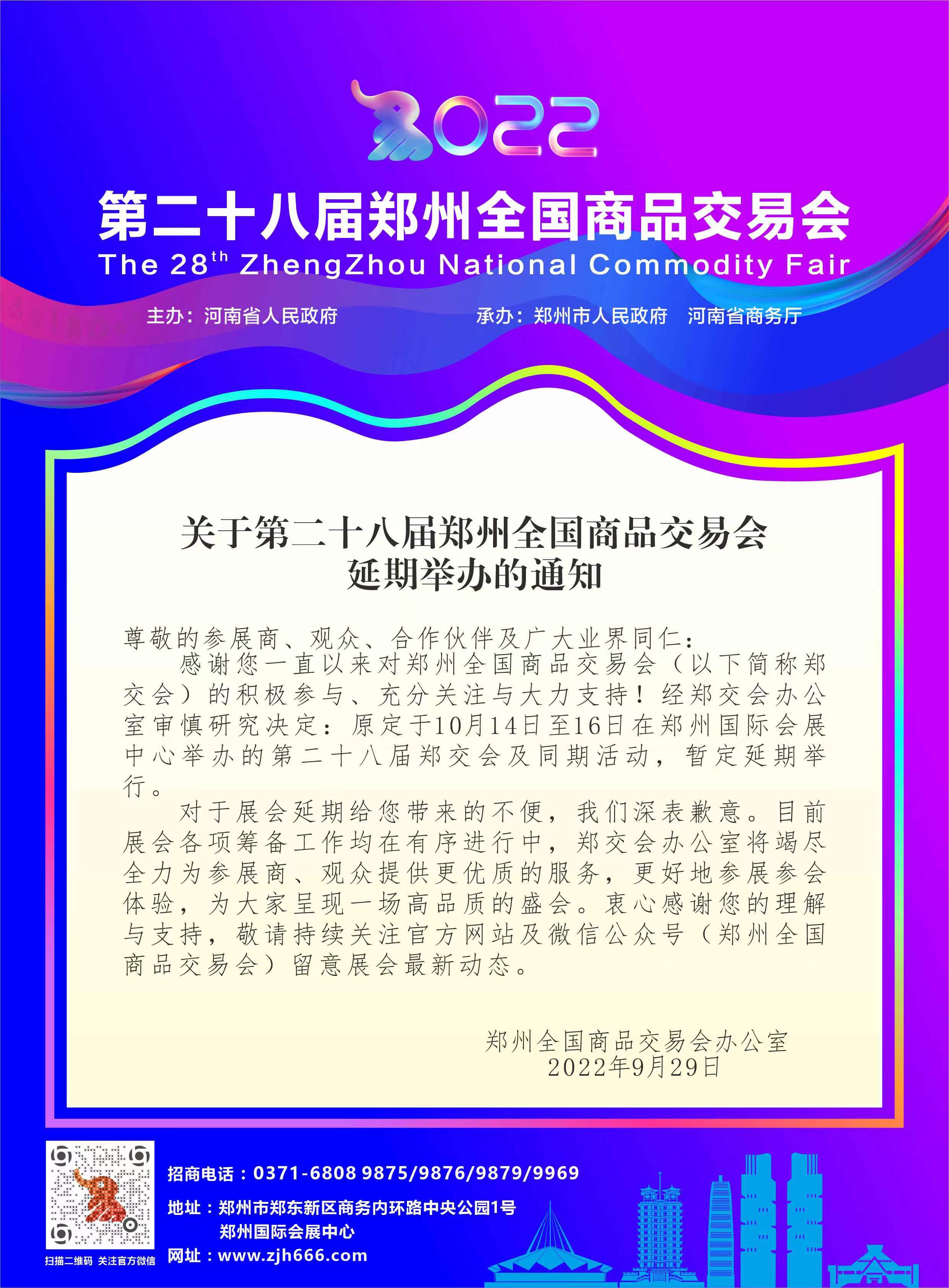 第二十八屆鄭州全國商品交易會延期舉辦