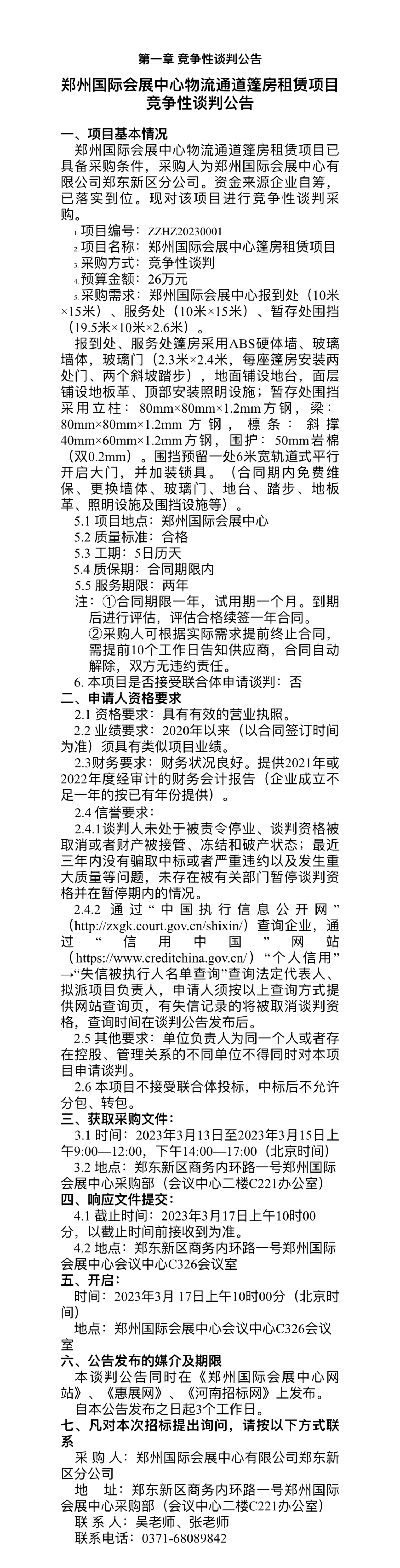 鄭州國際會展中心物流通道篷房租賃項目 競爭性談判公告